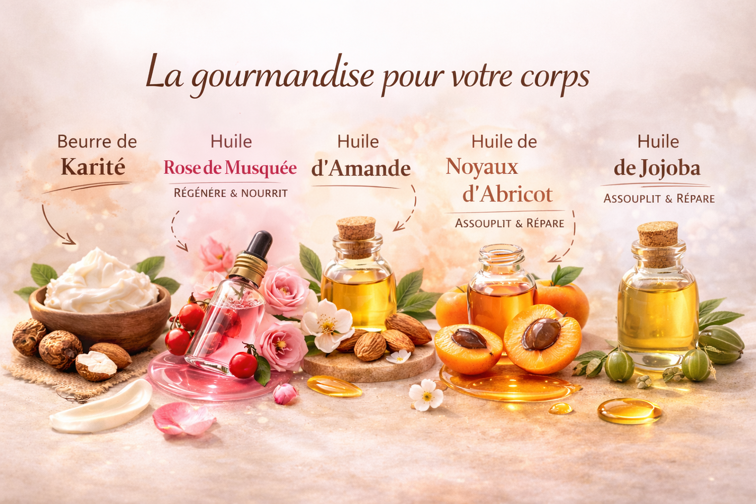 Des ingrédients soigneusement sélectionnés pour prendre soin de votre corps avec douceur et gourmandise.